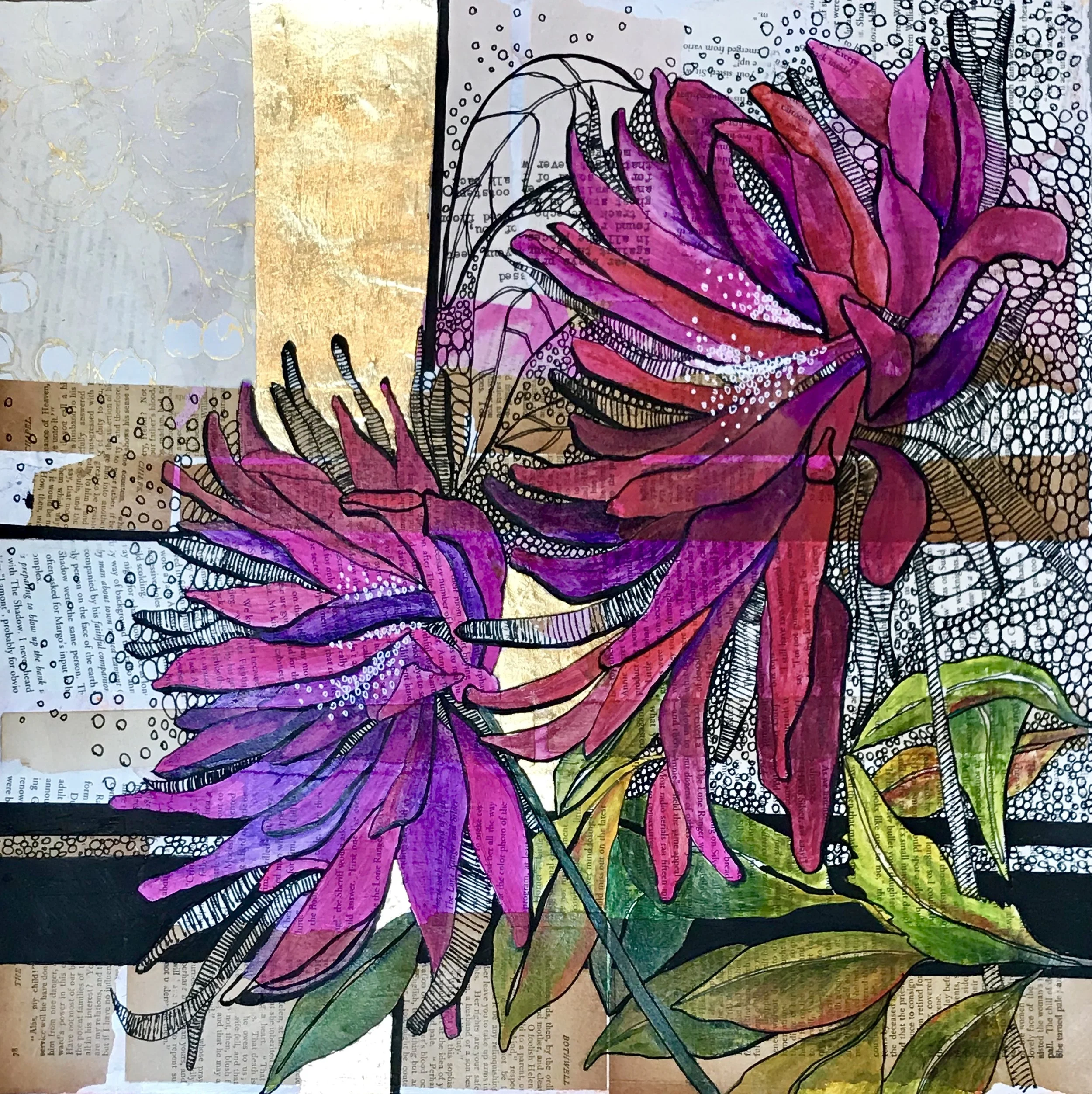 Medium: Acrylic, gold leaf, and collage